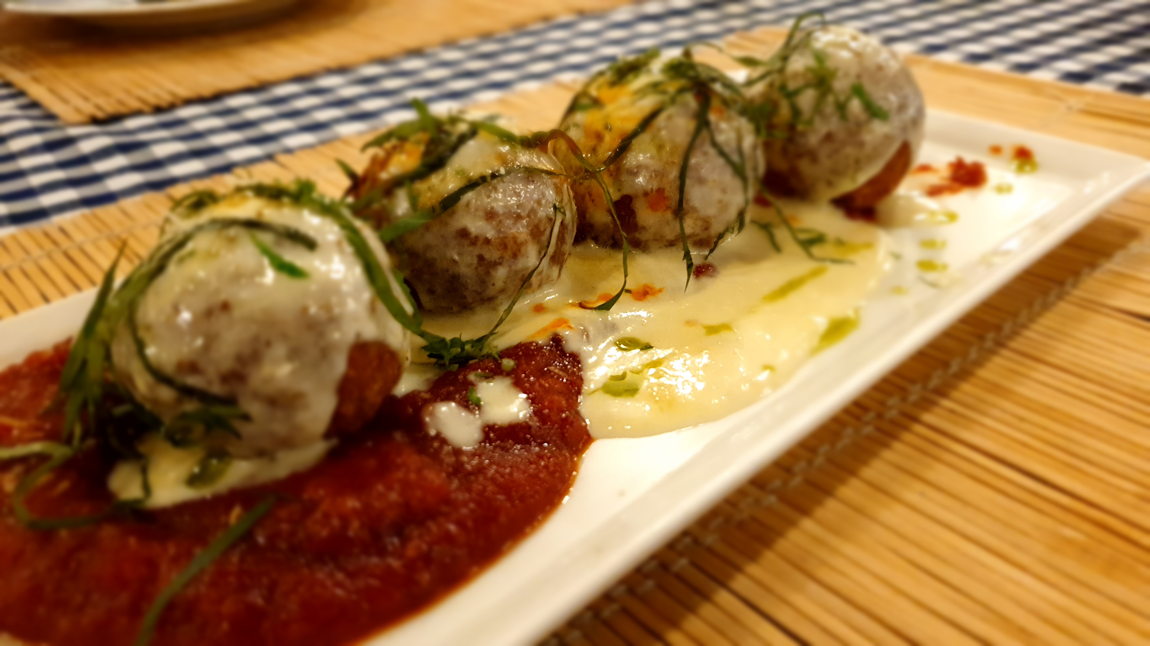 2. Arancini Balls: A recommended dish by friends & staff at the restaurant. These are crunchy rice balls filled with cheddar cheese inside and topped with tangy tomato dip and parmesan sauce. I must say a must-try dish. It was delicious.